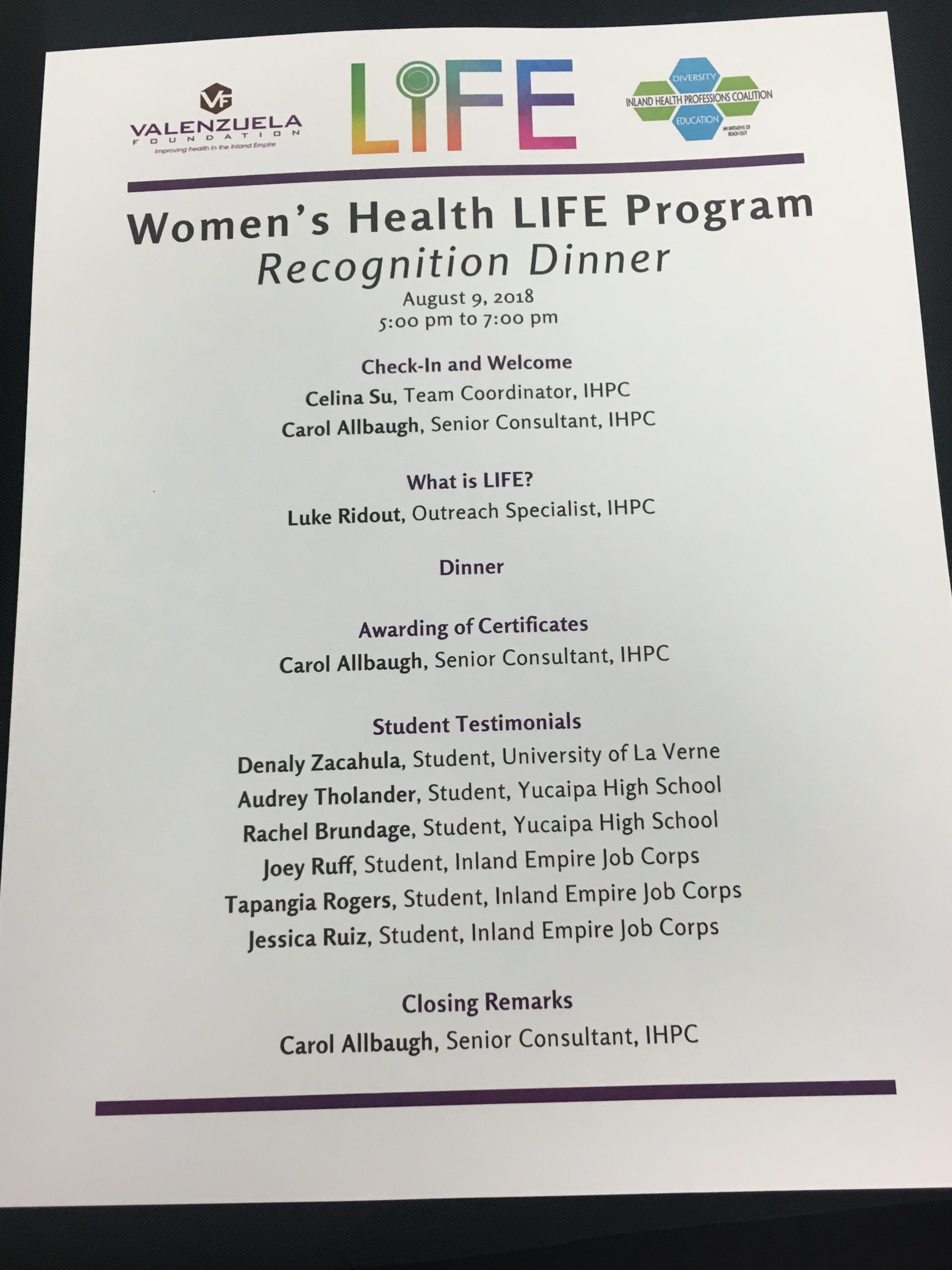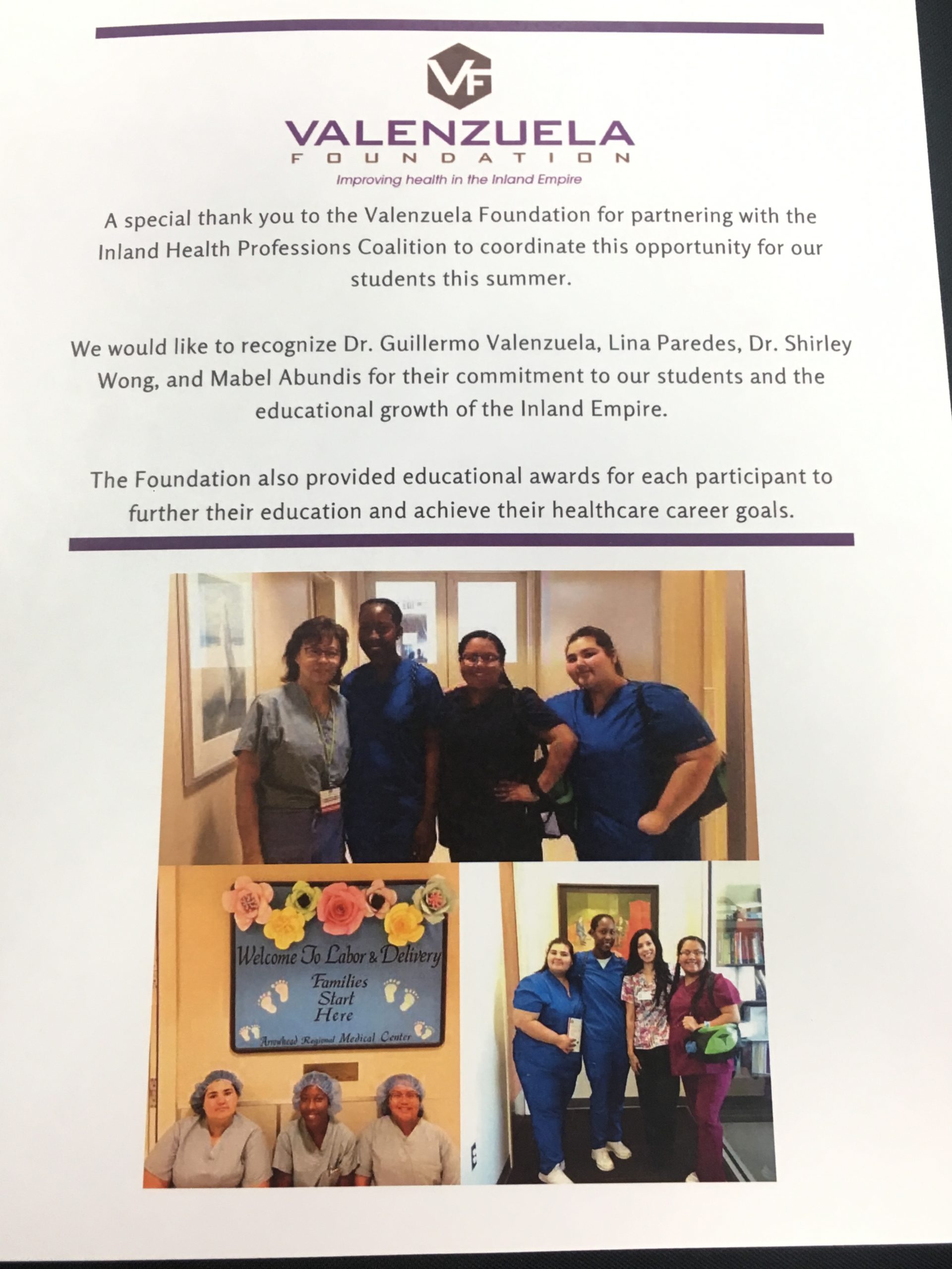 In summer 2018 and 2019, the Guillermo J. Valenzuela Foundation was thrilled to support Reach Out’s LIFE program which gives youth in the Inland Empire exposure and hands-on experience in a real clinical environment. These young women came out of the program feeling more confident about themselves and their capacities. It was wonderful to hear how the program impacted them, especially how it clarified and solidified their goals of pursuing a career in the medical profession. This outcome aligns with the Foundation’s mission which includes increasing the number of medical providers committed to practicing in the Inland Empire. Read the full article HERE